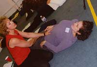 - Simulated demonstration with a tub, assisting a woman in the water. (No water, tub and props.)